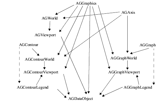 - AGGraph and AGContour connect to AGGraphLegend and AGContourLegend, respectively, to give information to the Legend.