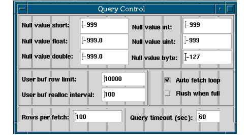 The Query interface provides three parameters that you can use to control the size of the fetch and user buffers used during fetch processing: Rows per fetch, User buf realloc interval, and User buf row limit.