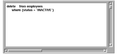 Suppose, for example, that you construct the following simple DELETE statement in the statement window of the Manipulate interface: