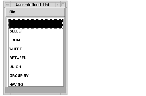 The User-Defined List window contains the contents of a user-specified file; for example: