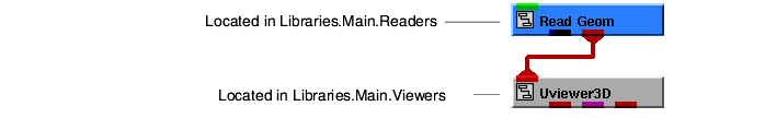 4. Display the modules window by selecting Editors->Modules. Select the first Read Geom from the option menu and press the Browse butto. A dialog box appears. Select dodec.geo, then select the OK button. Repeat the procedure for the other Read Geom entry in the option menu, but select a different file.