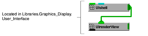 A Graphics Display Kit application requires a window in which to render the view. We create a window using the application component ViewUI. ViewUI defines a window, complete with a window panel and a UIrenderView panel in which the view appears.