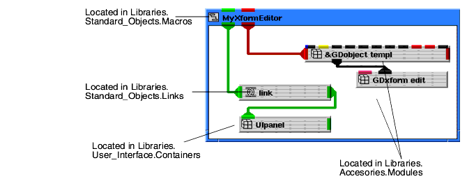 Most of the objects in these tutorials are located in Libraries.Main and Libraries.Graphics_Display. The location of other objects is usually included in the text or accompanying diagrams. If you have trouble locating an object, you can use the Network Editor's object finder (Object->Find in All Libraries...).