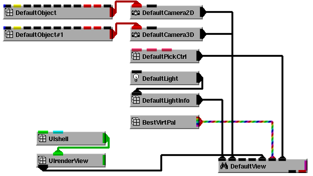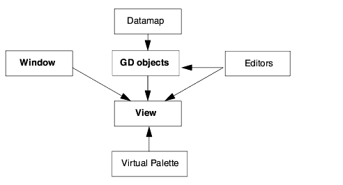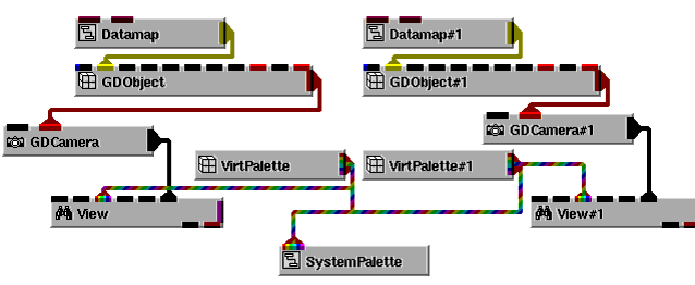 Each view has a window on the screen that is rendered into by the Graphics Display Kit. There are a number of possible connections between the virtual palette and the view: