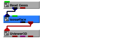 2. Instance into the SingleWindowApp workspace the following: ReadField, bounds and isosurface. Then, connect them as shown in the diagram below.