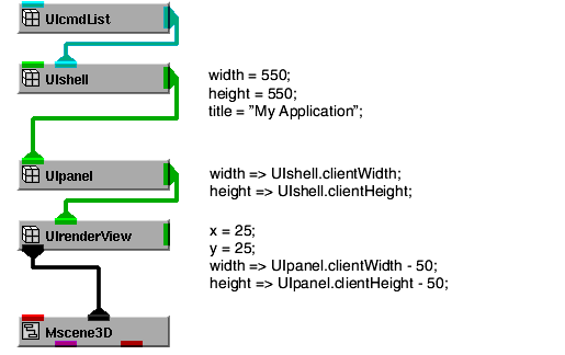 - With an application component. An application component is a macro object that packages a set of Graphics Display Kit capabilities. For example, Mscene3D is a macro object that defines a view, including a 3D camera, a set of lights, and other view-related base type objects.