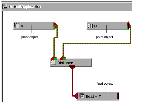 Notice that the distinctive port colors you chose for point objects make it easy to determine that Distance takes two point objects as input. Of course, you can always view the Object Info dialog for Distance.