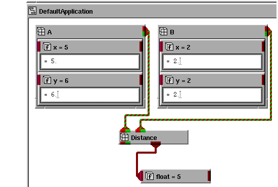 Notice, also, that AVS/Express has calculated a new distance, which appears in the float object.