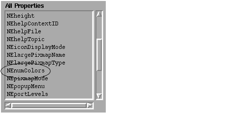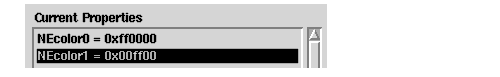 5. Find NEcolor0 in the All Properties list box, move it to Current Properties, and change its value from 0x303030 to 0xff0000.