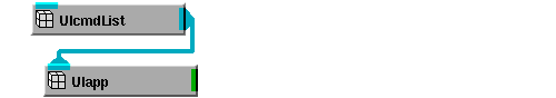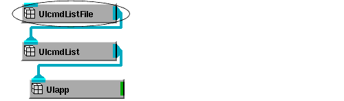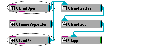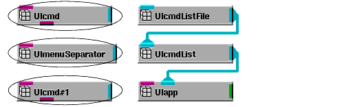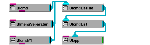 8. In the order described here, connect UIcmd to UIcmdListFile, then UImenuSeparator to UIcmdListFile, and finally UIcmd#1 to UIcmdListFile.