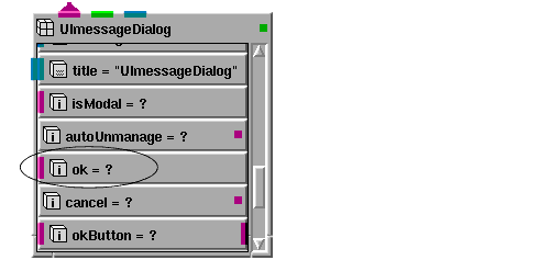 Notice that UImessageDialog now displays the output port for the ok parameter.