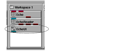 EchoUI now occupies the entire workspace. The title bar reads DefaultApplication.EchoUI, indicating that you are viewing the EchoUI object, located in DefaultApplication.