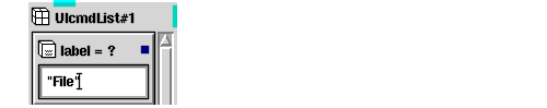 2. Open UIcmdList#1 and set the label parameter to the literal "File". Be sure to include quotation marks around the name.