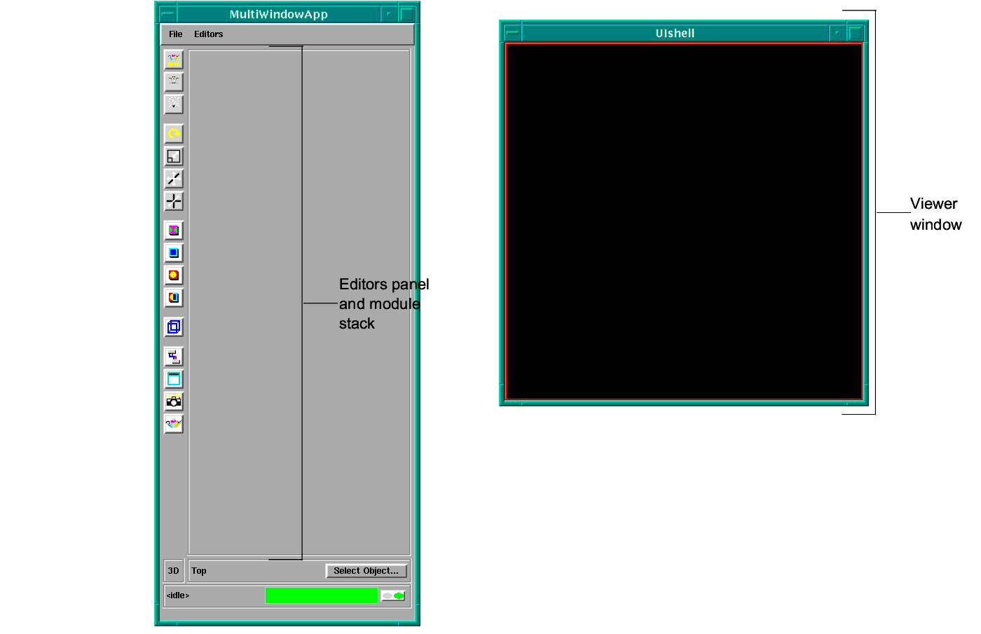 The multi-window DataViewer application creates two windows, a viewer window and a separate window for the editor controls: