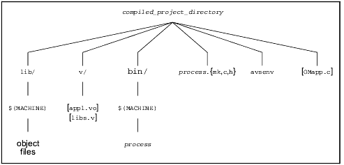 When AVS/Express compiles a project, it chains it off the project directories of the original project; that is, the project that was active at compilation time. You can determine which project directories were used to create the new project by reviewing the avsenv file in the new project directory. The compiled project uses libraries and object files from these other project directories when its executable is being linked; therefore, you must also compile these other projects if they define any new code that the compiled project uses.