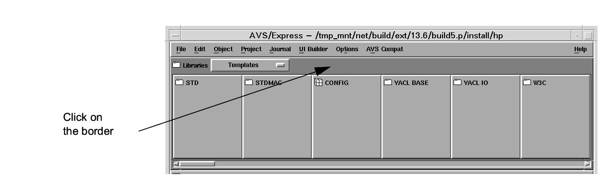 Since your project will contain only a compilation of system objects, the organization of the Libraries object in the Network Editor must also display a subset of the objects in the system. The current version of AVS/Express does not perform a subset operation on the existing Libraries organization for you. Instead, it creates a default v/libs.v file that displays the contents of the Templates object only. This display lists all of the libraries that are included in AVS/Express but in a very raw form. In order to get a better libraries organization, you must create your own customized v/libs.v file.
