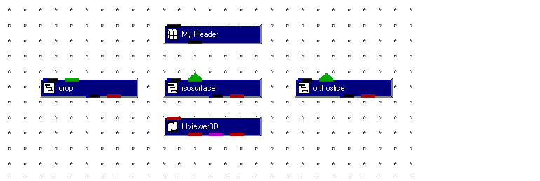 For example, suppose that your application consists of a module that reads data, executes some user-specified visualization technique on the data and renders the output. Your application network might consist of the following modules: