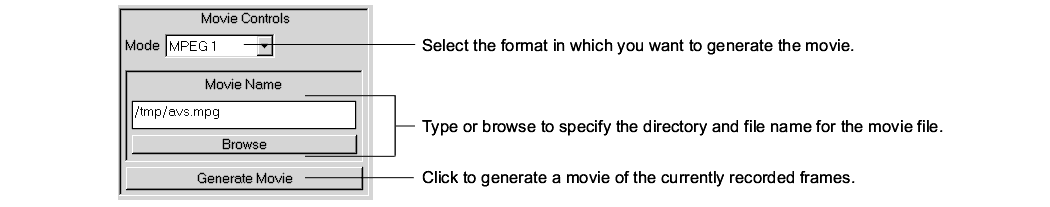 2. Use the Movie Name typein or the Browse button to specify the directory and filename in which to store the movie files.
