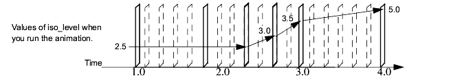 The following diagram illustrates the values of the iso_level parameter in the interpolated frames when you run the animation.