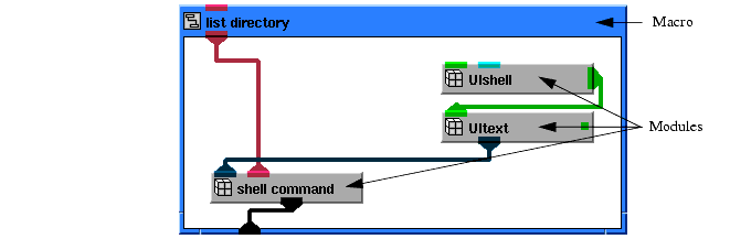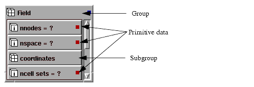 Groups, modules, macros, and libraries can have subobjects, which themselves can have subobjects. This relationship of objects within objects is called the object hierarchy. AVS/Express has a single object hierarchy to which all objects belong.
