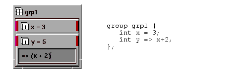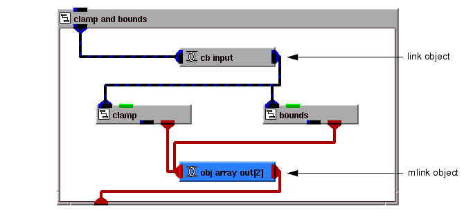 For example, you define a group whose method creates a large array of float data, stored in subobject out. You also define an object called max and connect it to the maximum value in out:
