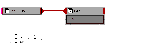 Primitive data objects can always serve either as the source or destination of a connection. When you are making simple connections between primitive data objects, since these connections respond symmetrically to read and write operations, there is not much difference between connecting object a to b and connecting b to a. There are two significant differences, however: