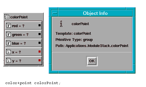 Primitive data objects are the simplest base types and are used to hold the raw system data. They are usually instanced as subobjects of a group or a module but can also be dropped into a macro as an independent piece of data. The following table lists the different types of data that are supported: