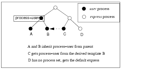 - A single external process, called user. Initially, the only objects that use this process are those in Templates.USER (which appears in the Network Editor also under Libraries.User_Libraries.User_Modules). All of the other objects use the express process.