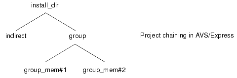 The ability to create derived projects allows you to build a project hierarchy that consists of chains of derived projects in which one project is a derivative of some other project (typically a group project), which in turn is a derivative of yet another project (typically the install project). Working in a chained project hierarchy, developers can share objects and work on specific objects that are unique to their own development tasks. Files stored in a local project override those files stored in the parent project, which override those in their parent project, and so on.