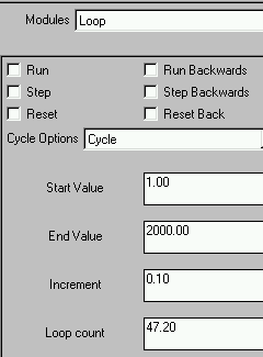 The Cycle Options menu controls how the simulation Run and Step controls will behave relative to the Start, End, Increment and Loop count values below: