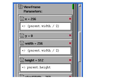 f. Set up the second view's geometry as explained below. Set x to be a reference to (parent.width / 2) . Set width to be a reference to (parent.width / 2). Set height to be a reference to parent.height. When set, the new values should appear as in the following diagram: