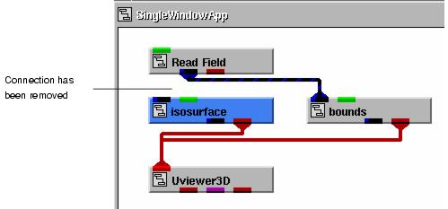 - Notice that the connection line between Uviewer3D and bounds passes under isosurface. You can make the connection line clearer by moving Uviewer3D to the right.