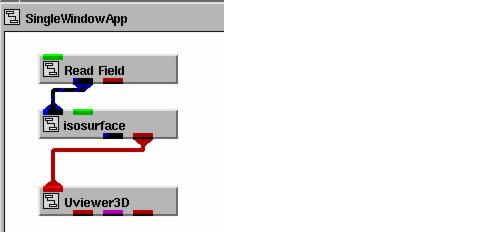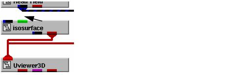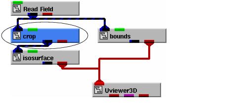 - Note: You do not have to physically place crop between Read_Field and isosurface to make the connections. You could place it anywhere, but the connection lines would not be as clean, and it would be harder to see the structure of your application.