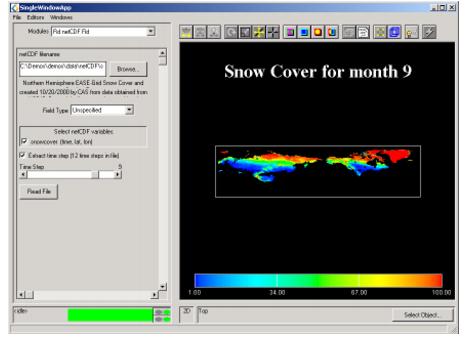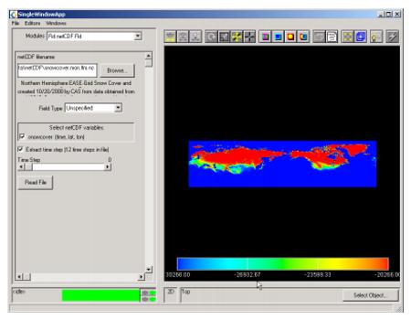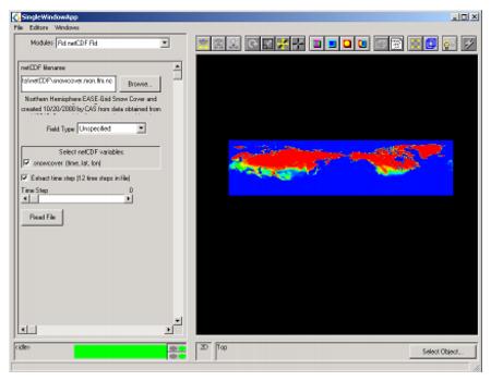 7. Close Text_UI, and Text_Title. Now view your SingleWindowApp. It should appear similar to this. Slide the Time Step in the Rd netCDF Fld module if you wish to change the month.