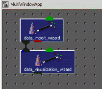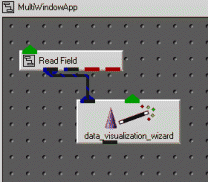 Using the Data Visualization WizardThe Data Visualization Wizard will help you to create an simple visualization application without having to learn much about using the Network Editor. The Data Visualization Wizard, is not for building large, complex applications. It can be used by new users who are unfamiliar with the Network Editor editor and by experiences uses who want to quickly build a simple application. You may have created the wizard when you started AVS/Express with the initial "choose application" dialog.