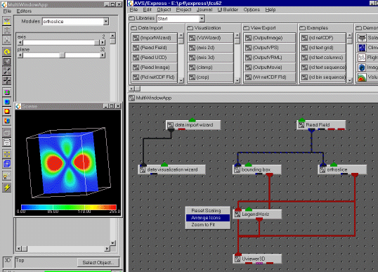 As a precondition for using the Data Visualization Wizard, you must have a valid AVS/Express field connected to the import port of the wizard. You can use the Data Import Wizard to read in a data file or you can directly use one of the readers.