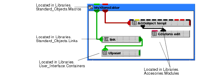 Most of the objects in these tutorials are located in Libraries.Main and Libraries.Graphics_Display. The location of other objects is usually included in the text or accompanying diagrams. If you have trouble locating an object, you can use the Network Editor's object finder (Object->Find in All Libraries...).