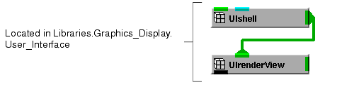 - Instance into the ModuleStack workspace the objects UIshell and UIrenderView, then connect them as shown in the diagram below.