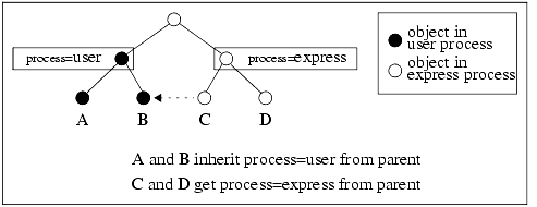 The following figure illustrates the process organization of the AVS/Express object hierarchy: