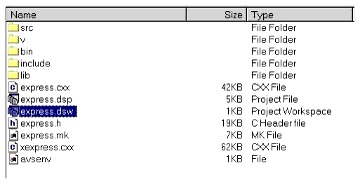 7. After the compiled project has been generated, exit from AVS/Express and start Microsoft Developer Studio.