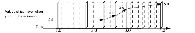 The following diagram illustrates the values of the iso_level parameter in the interpolated frames when you run the animation.