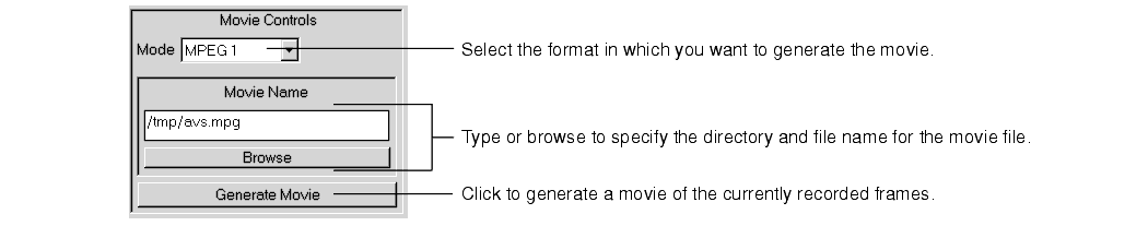 2. Use the Movie Name typein or the Browse button to specify the directory and filename in which to store the movie files.