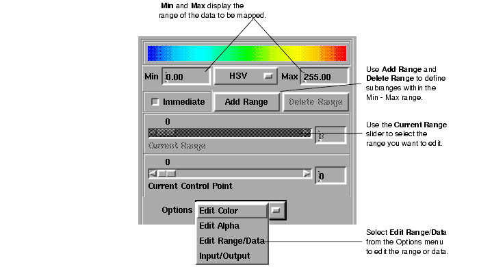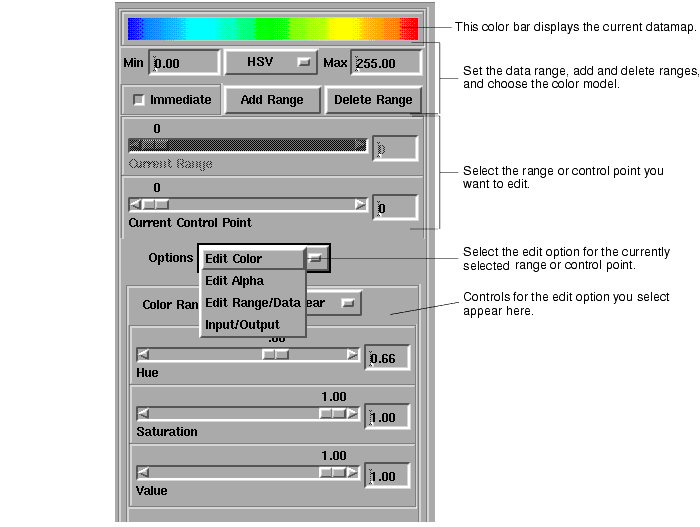 The chapter provides detailed reference information on the DataViewer editors. AVS/Express makes these editors available by default in the SingleWindowApp and MultiWindowApp start-up applications. They are included in the Uviewer series of viewers. You can use these editors to control the rendering and display of your visualization.