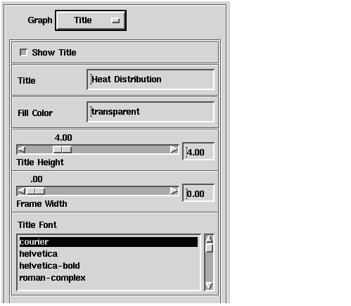 The label for the X axis appears beneath the graph and the label for the Y axis appears to the left of the graph. You specify the text and appearance of a label by selecting values for the Text field, and the Label Height and Title Height slider bars.