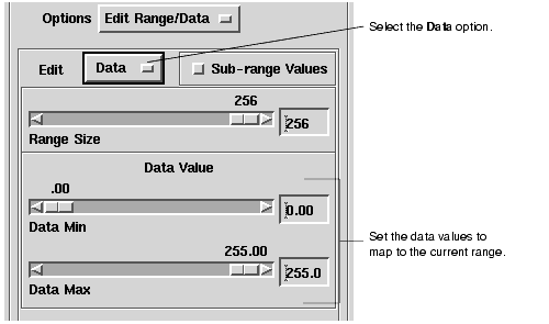 - Use data min/max, Class Minimum, Class Maximum - You can use these three controls to position the isolines in the data. If the Use data min/max button is set the first class value is set to the minimum data value and the last class value is set to the maximum data value. If you set Use data min/max off, you can set Class Minimum and Class Maximum to specific data values. In this case the first class value is set to Class Minimum and the last class value is set to Class Maximum. The Num Classes field determines the number of isolines drawn between the minimum and maximum classes.