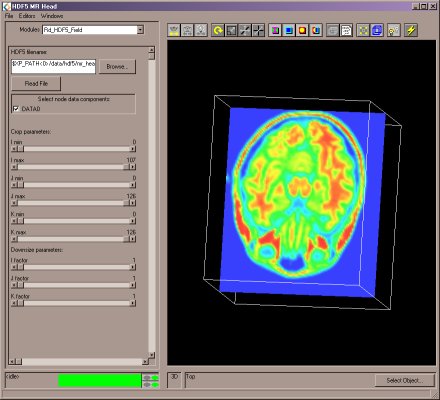 What's New in AVS/Express 6.1HDF5The handling of large data sets has been greatly improved with the addition of the HDF5 (Hierarchical Data Format) based reader and writer. HDF5 can be used to used to store multi gigabyte datasets. AVS/Express takes advantage of HDF5's abilities to select subsets of the data file before the data is read into memory. (more...)