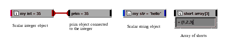 Each of the types above can represent either a scalar or a multi-dimensional array. Here are a few examples of different primitive data objects: