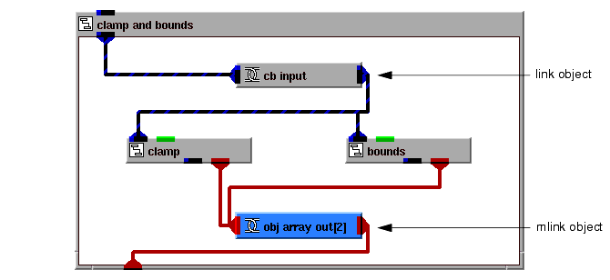 Link objects are used to route connections in as generic a way as possible. They can connect to any type of object and accept connections from any type of object and they ensure that both from and to connections are compatible in type. Link objects are commonly used in macros to perform one of the following functions: