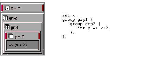 A group is used for an object that is a parameter to a module. It typically has primitive values and other groups as its subobjects. It is displayed in the Network Editor as a list. A typical group is the Field object:
