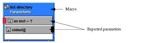 A macro is used to define an object that has modules, other macros, and links as its subobjects. A macro is typically displayed as a graph (or network) of the objects and connections it contains (Network Display Mode):